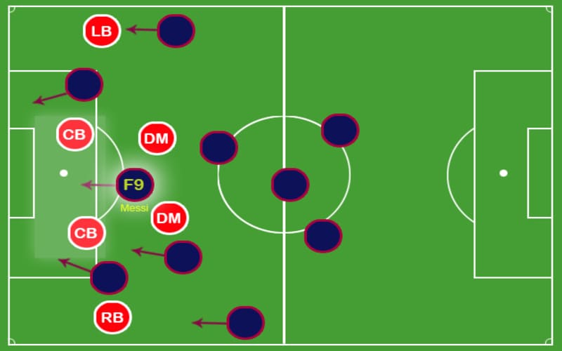 Điển hình là cách Lionel Messi phối hợp với các cầu thủ như Pedro Rodríguez hay David Villa trong thời kỳ đỉnh cao của Barcelona.